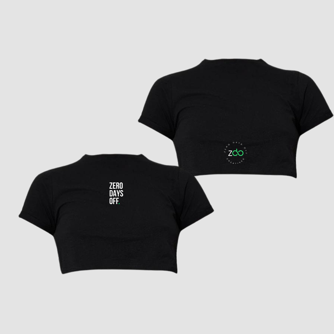 Step out in effortless style with the ZDO Crop Top. Designed with a bold Zero Days Off imprint on the front and finished with the official ZDO logo at the back, this short-sleeve, essential brings comfort and statement energy together. Crafted from premium, breathable fabric, it’s versatile, lightweight, and perfect for anyone ready to embody the ZDO spirit.